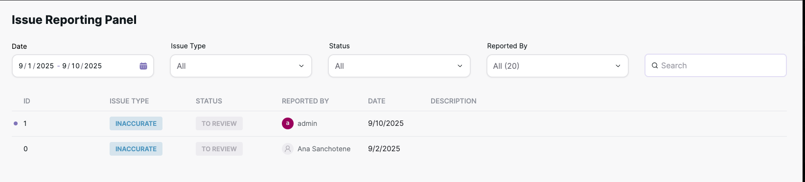 - Se abordó un problema donde el panel de reporte de problemas mostraba una fecha vacía.